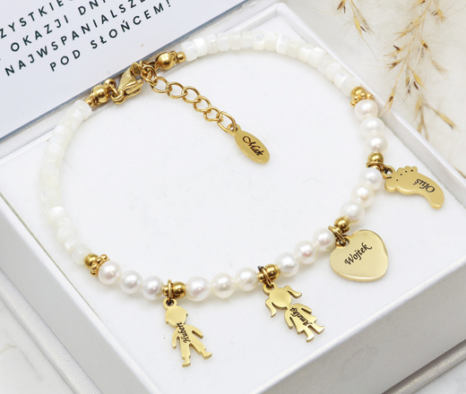 Bransoletka dla mamy z imionamio dzieci złocona z grawerem i perłami 1746/10