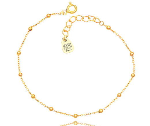 Br 599/978 BRANSOLETKA złota na stopę, podwójny łańcuszek , ze złotymi kuleczkami