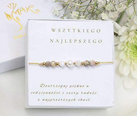 Zestaw urodzinowy bransoletka beżowo-brązowa z perełką 1873/13