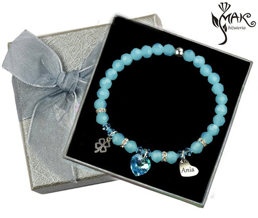 BR825 BRANSOLETKA Z GRAWEREM stal kryształki błękit serce