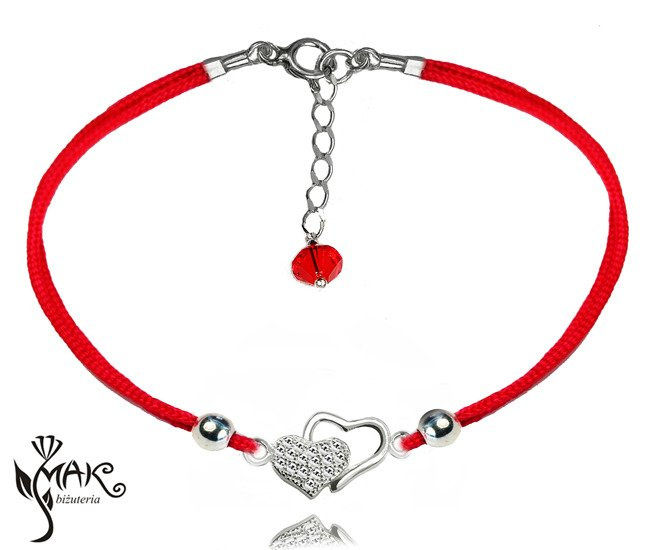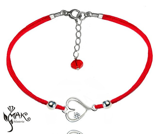 BR835 BRANSOLETKA serce cyrkonia srebrna sznurek