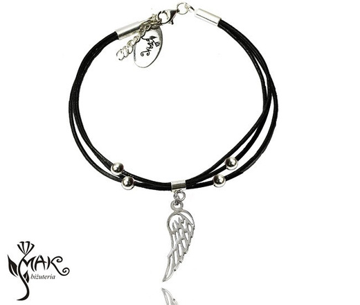 BR723 BRANSOLETKA SKÓRZANA skrzydło srebro 925 grawer
