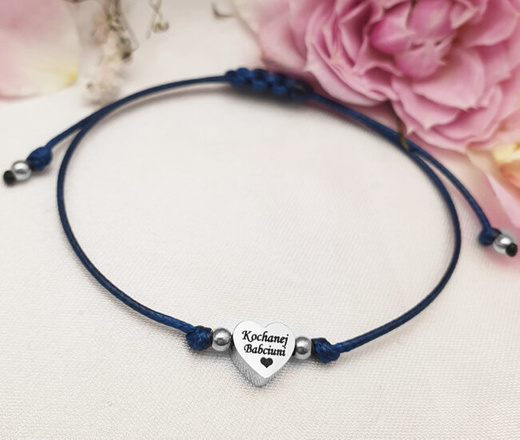 1538 bransoletka z grawerunkiem serce na sznureczku