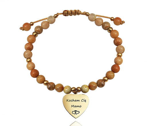 1600 bransoletka z sercem grawerowanym kamienie naturalne