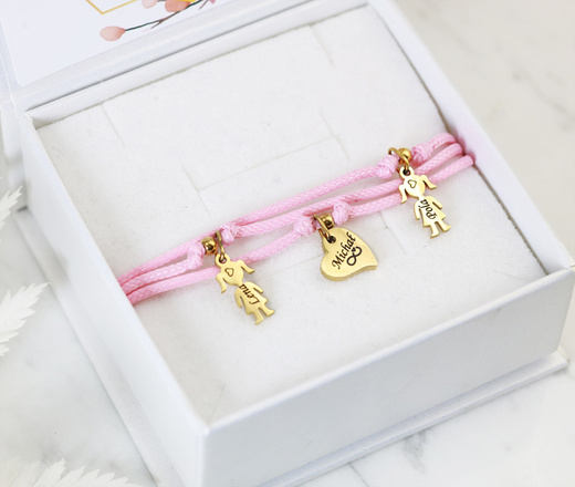Bransoletka charms z grawerowanymi imionami dzieci złocona kolory dla mamy1790