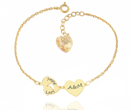 1481 bransoletka srebrna 925 złocona z grawerem koniczynka serce stopki