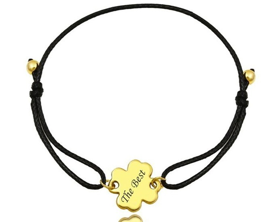 1125 bransoletka z grawerem złota koniczynka na sznurku