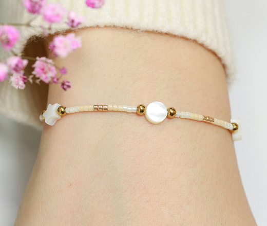 Zestaw urodzinowy bransoletka beżowo-brązowa z perełką 1873/13