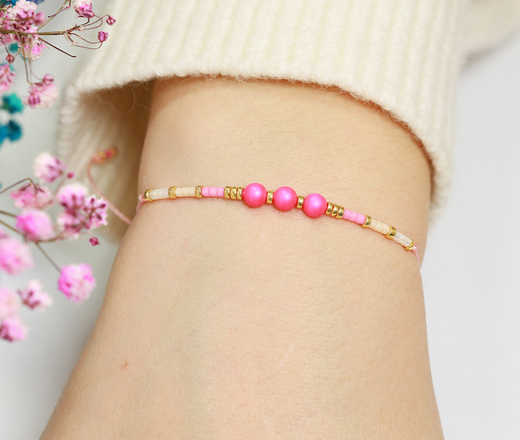 Bransoletka różowa z koralikami na sznureczku 1624/11