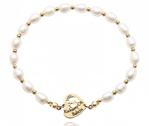 1746/10 Bransoletka złocona z grawerem i perłami dla babci