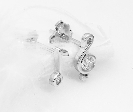 1861/1 kolczyki wkrętki z nutą i kluczem wiolinowym wysadzane cyrkoniami, srebro 925