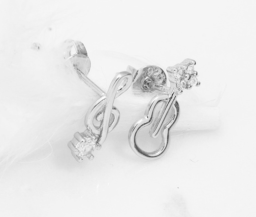 1861/3 kolczyki wkrętki z skrzypcami i kluczem wiolinowym wysadzane cyrkoniami, srebro 925