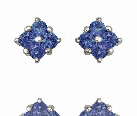 480/291 kolczyki srebrne kwiatuszki z szafirową / niebieską cyrkonią