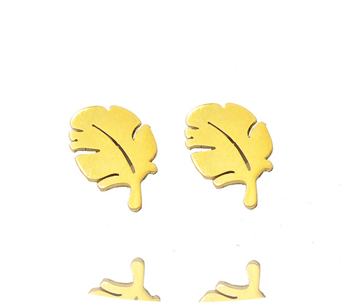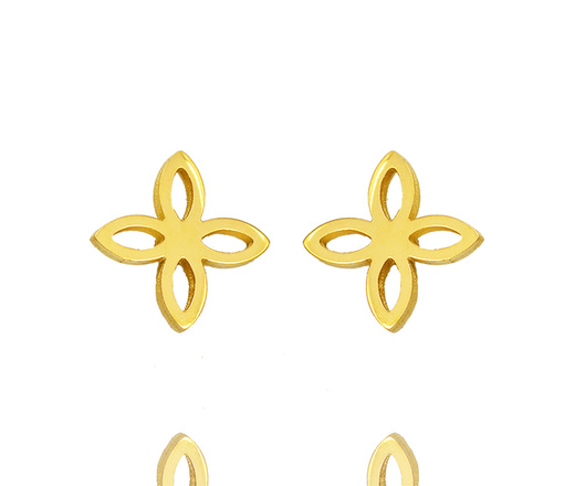1232/26 kolczyki stalowe złote koniczynki ażurowe 9 mm