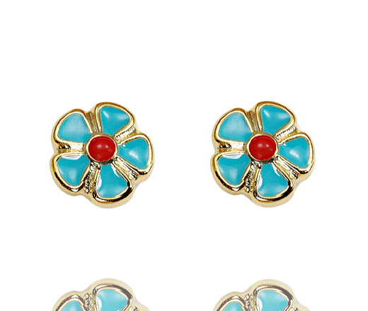 kolczyki dla dziewczynki niebieskie kwiatuszki z emalią 1777/4