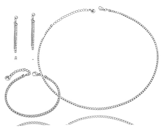 Komplet ślubnej biżuterii z cyrkoniami – naszyjnik, kolczyki, bransoletka 1816/9