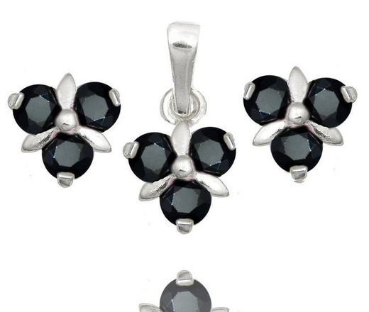 480/321 Komplet srebrny 925, kwiatki z czarną cyrkonią , kolczyki, wisiorek .