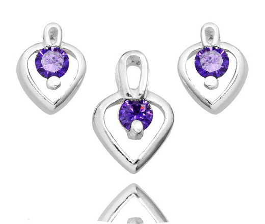480/356 komplet srebrny 925 serca z cyrkonią fiolet kolczyki wisiorek