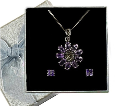 480/209 komplet srebrny fioletowy kwiatuszek