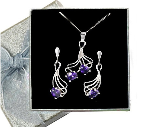 480/212 komplet srebrny fioletowe cyrkonie