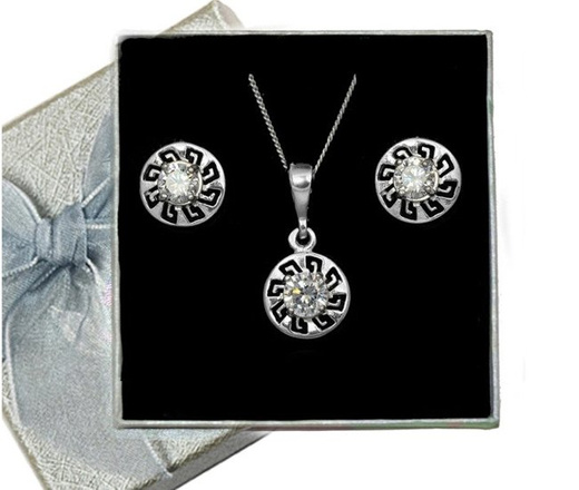 480/254 Komplet srebrny ażurowy z cyrkonią, greckie wzory