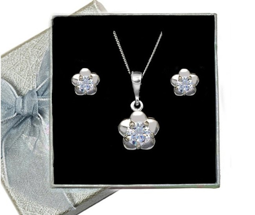 480/252 komplet srebrny kwiatuszki z błyszczącymi cyrkoniami