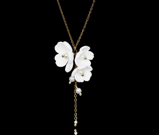 naszyjnik ślubny pozłacany z kwiatuszkami handmade 1816/1