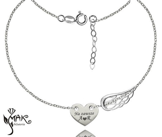 NK851 naszyjnik grawerunek celebrytka serce skrzydło srebro 925