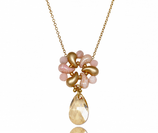 naszyjnik pozłacany beżowo-różowy wyplatany ręcznie 1816/13