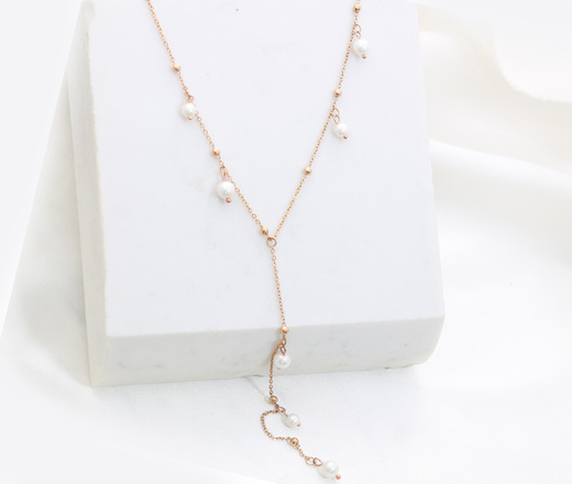 Naszyjnik krawat różowe złoto z perłami i kuleczkami 1857/12