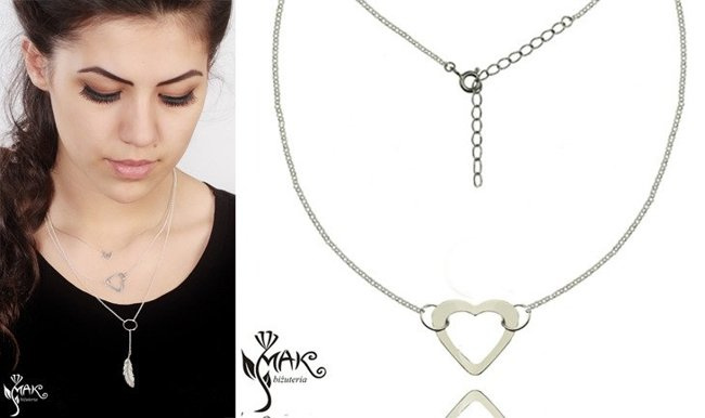 NK707 NASZYJNIK serce 100% SREBRO 925 GRAWER