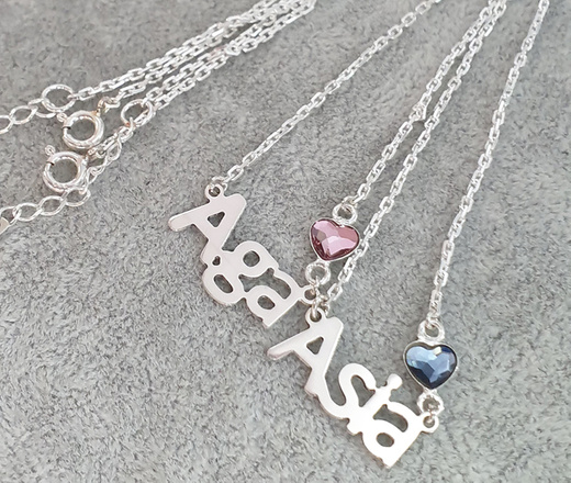 1470 naszyjnik z dowolnym imieniem serduszko Swarovski Elem. 100% SREBRO