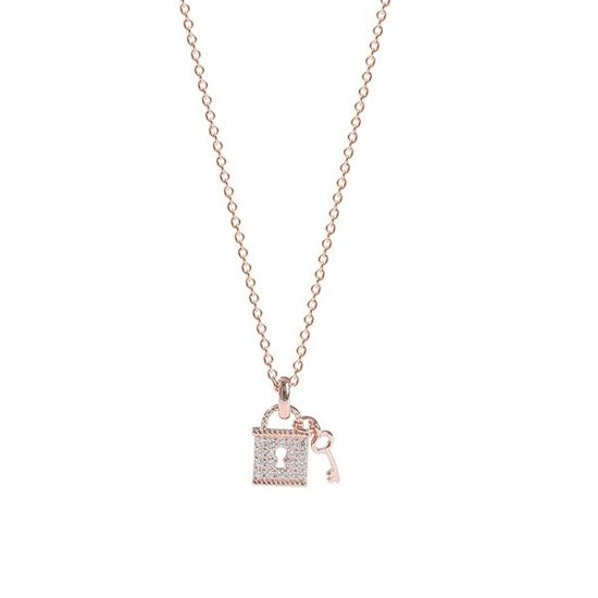 1064/7 Naszyjnik różowe złoto kłódka i kluczyk srebrny 925