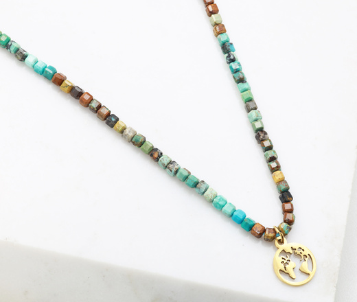 Naszyjnik z globusem i kamieniami naturalnymi (turkus afrykański) 1799/1