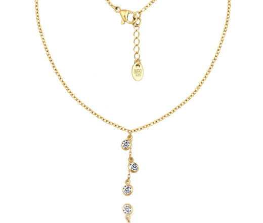 1498 naszyjnik srebrny 925 pozłacany z cyrkonią i kryształkiem