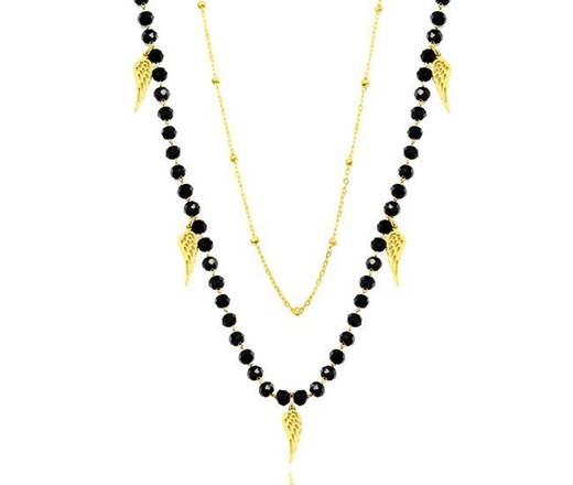 1251/6 naszyjnik złoty stalowy kryształki skrzydełka