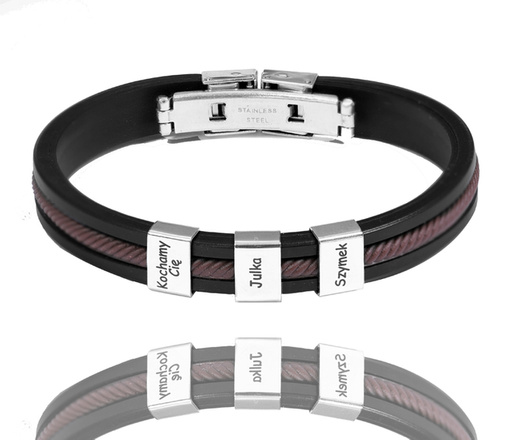 1503 bransoletka męska stalowa personalizowana czarno brązowa