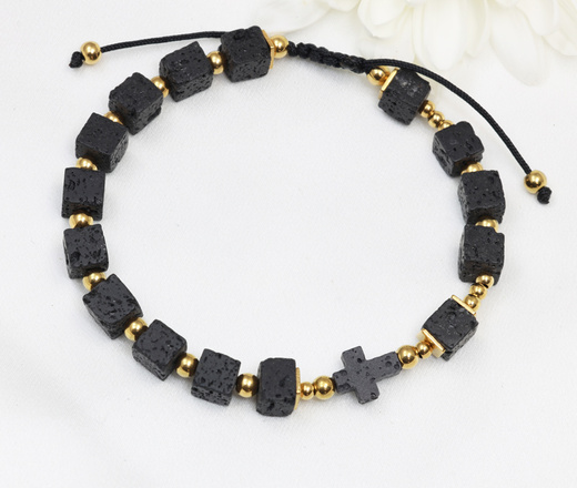 Bransoletka różaniec grawerowany z krzyżykiem lawa wulkaniczna 1877/9