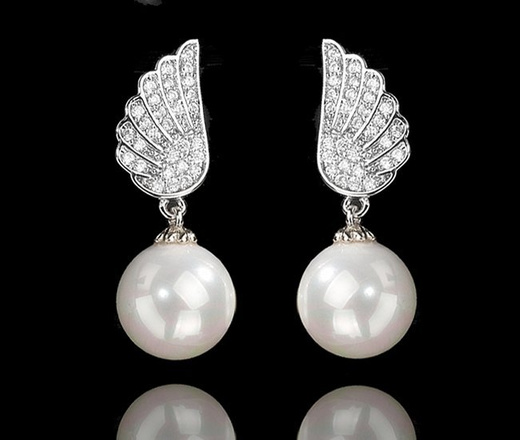 Kol 599/971 kolczyki ślubne platynowane skrzydła anioła perełki