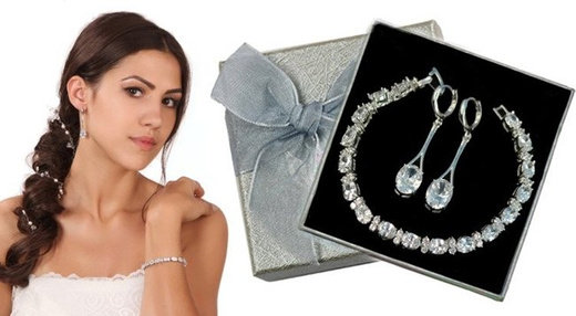 Kpl888 komplet ślubny, biżuteria ślubna z cyrkoniami b599/656 k579/579