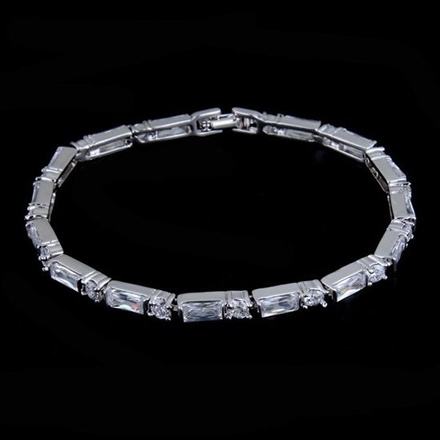 Br599/803 delikatna BRANSOLETKA ślubna z postokątnymi cyrkoniami