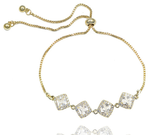599/1092 bransoletka delikatna z cyrkoniami kwadraty pozłacane