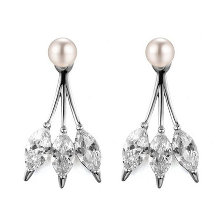 KOL599/691 KOLCZYKI ze stali, wiszące z perłą, sztyft, srebrne