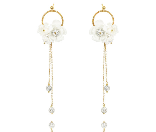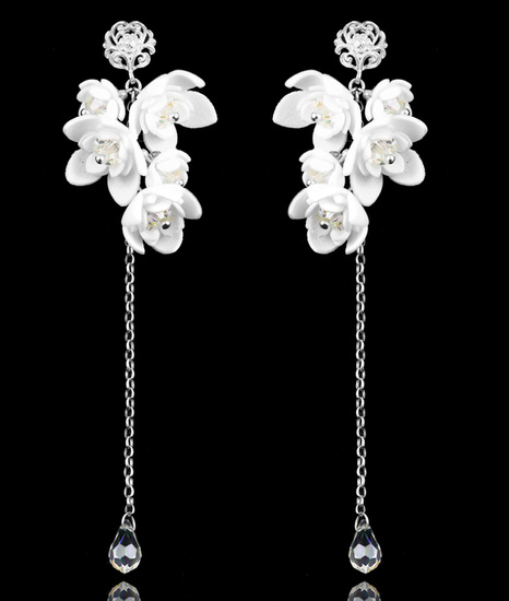 1664 eleganckie długie kolczyki dla Panny Młodej kwiatuszki srebrne