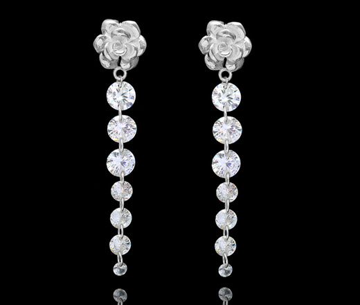 1664 eleganckie długie kolczyki dla Panny Młodej kwiatuszki srebrne
