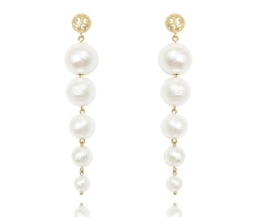 1667 kolczyki ślubne pozłacane perły jedwabne