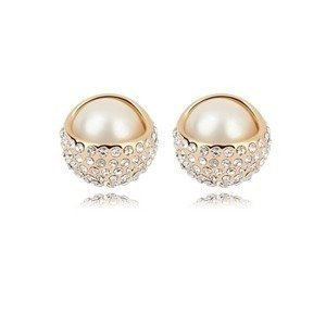 Kol 599/100 kolczyki kryształy złocone biały kwiatek z perłami