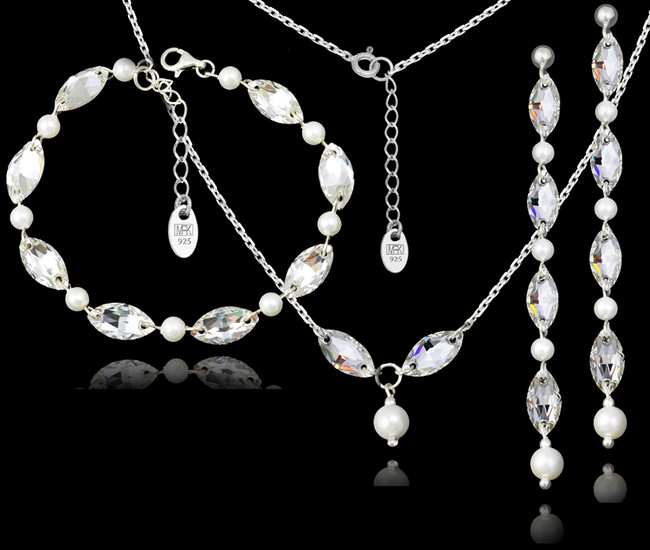 Komplet ślubny z cyrkoniami srebro 925 – naszyjnik, kolczyki, bransoletka 1816/11