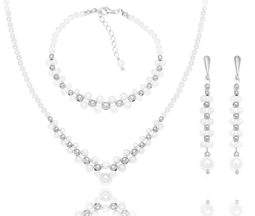 KPL421/2 PIĘKNY KOMPLET PEREŁKI BRANSOLETKA+KOLCZYKI - ŚLUB