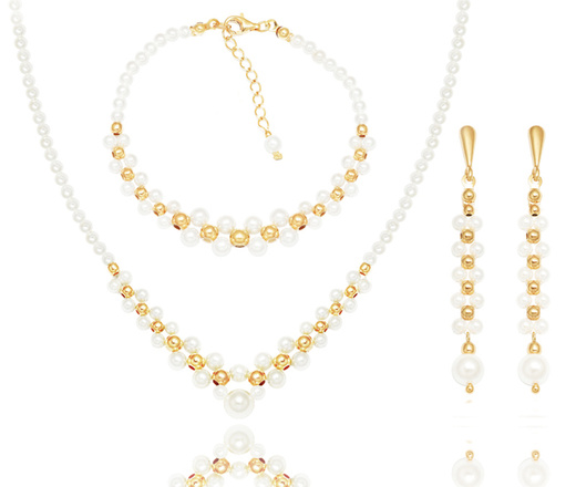 1393 komplet srebrny pozłacany z perełkami na ślub